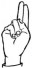 На ћирилици написано НЕБОЈША ДОРОНТИЋ састоји се из 15 слова [?]. Исписано ћириличном једноручном азбуком за глувонеме: